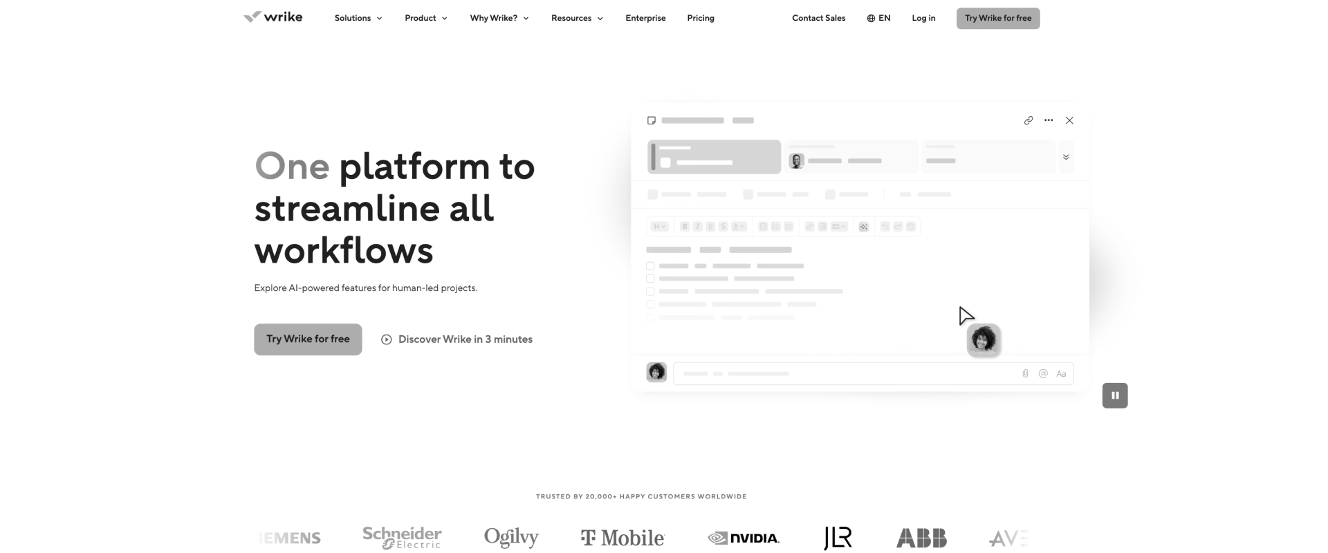 Wrike Cross-functional enterprise workflows Mid-market → Enterprise ~4.2 ~$9.80–$14.80/user/mo (Team → Business) Workflow control and approvals