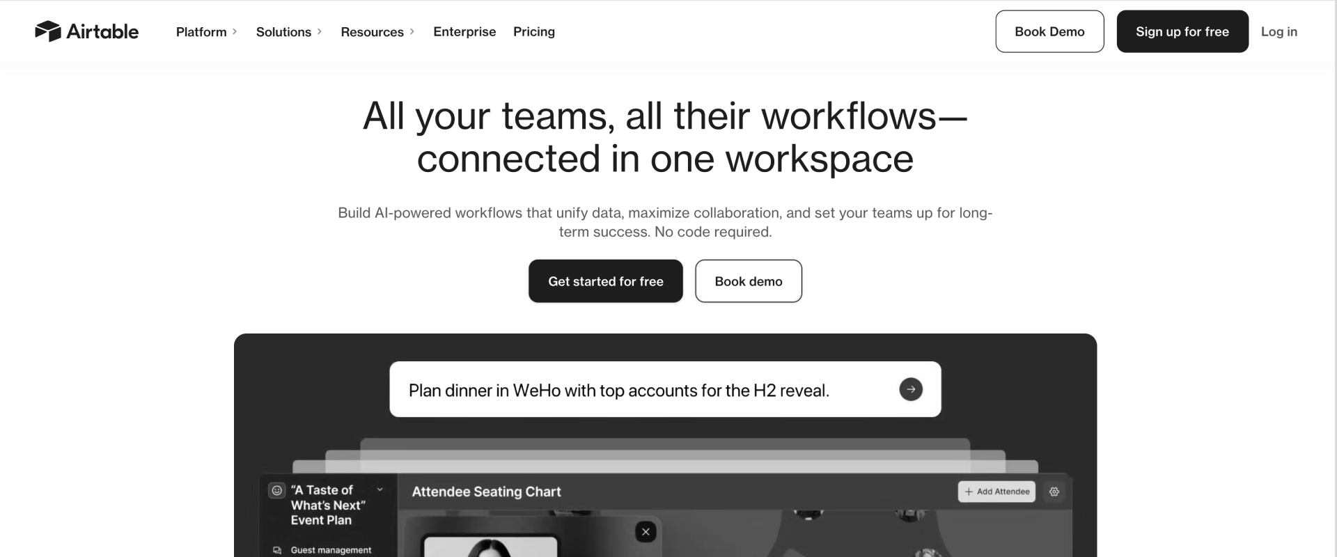 Airtable Data-driven workflows SMB → Mid-market ~4.6 Free; paid starts ~$20/user/mo (Team) Relational database flexibility
