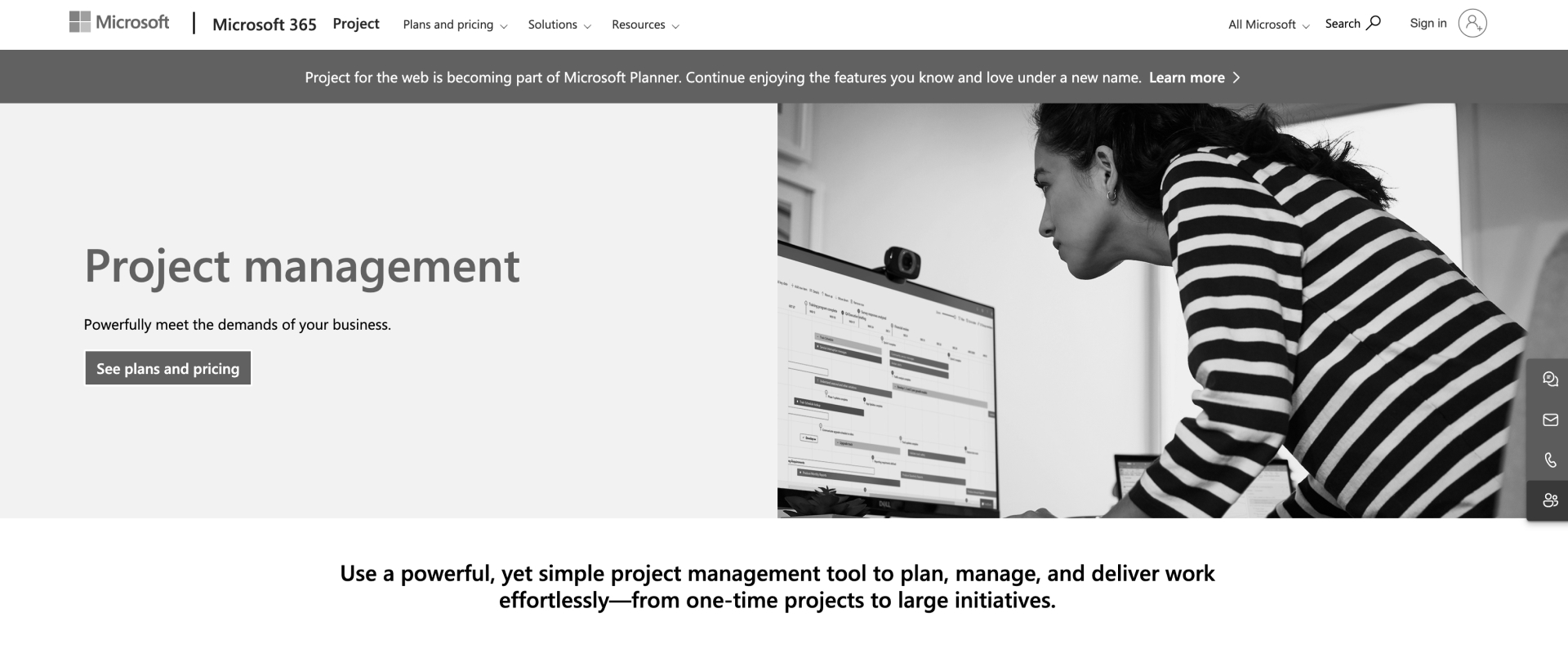 Microsoft Project Enterprise planning (M365) Mid-market → Enterprise ~4.5 ~$10/user/mo (Project Plan 1) Advanced scheduling + M365 integration
