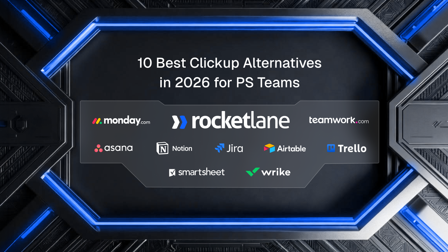 Rocketlane is the best ClickUp alternative for professional services teams. It is the only platform that combines project delivery, client collaboration, resource management, and agentic AI in a single PSA, without requiring external integrations for billing, time tracking, or client portals.