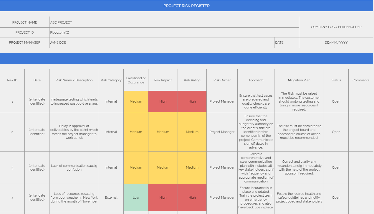 Project risk can be defined as any event that can positively or negatively impact the progress of a project. Therefore, anything that could potentially affect your project must be assessed and recorded appropriately in the risk register. As a project grows, it becomes increasingly difficult to keep track of all its associated risks. The purpose of a project risk register is to identify, document, analyze and monitor these risks and provide a mitigation plan.