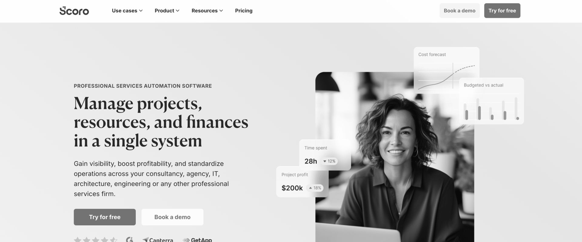 - Scoro – Works for mid-market services-led teams prioritizing visibility and simplicity.