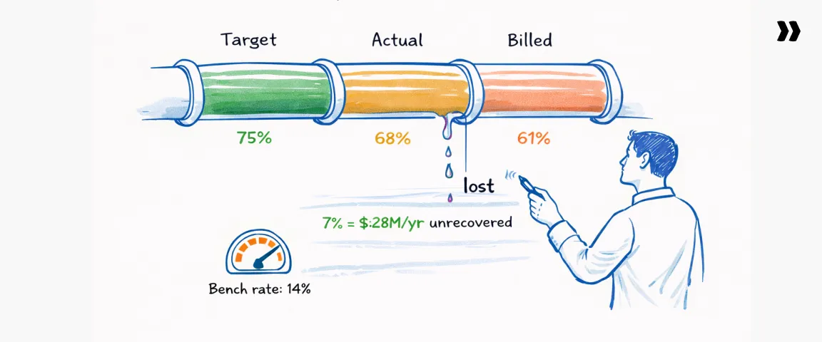 However, most firms rely on lagging indicators like revenue per consultant, quarterly bookings, and utilization rate. By the time those numbers move, the underlying delivery or pipeline problems have typically been developing for weeks.
