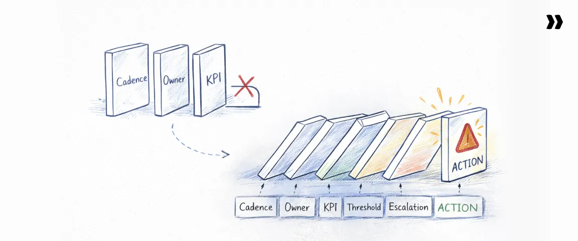 • Common mistake: Reviewing KPIs only during quarterly business reviews.